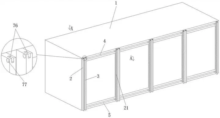 本实用新型提供了一种用于非步入式储能能源柜的移动检修篷装置,包括能源柜柜体,所述能源柜柜体正面等距离设置有多根第一支撑杆,所述能源柜柜体正面等距离设置有多根第二支撑杆,且所述第一支撑杆与所述第二支撑杆左右设置,所述能源柜柜体正面上端等距离开设有多个第一导轨槽,所述能源柜柜体正面下端等距离开设有与所述第一导轨槽相配合的第二导轨槽,所述第二支撑杆背面上下两端均设置有嵌入设置于所述第一导轨槽和所述第二导轨槽内的T形限位块;所述第一支撑杆和所述第二支撑杆之间安装有用于检修时移动展开的折叠检修件;本实用新型结构简单,操作便捷,能够在非步入式储能能源柜进行调试、检修时,为人员提供遮挡且保护电池安全性能。