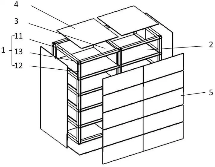 本实用新型提供一种轻量化储能箱体,所述箱体包括多个隔舱框架,所述隔舱框架由多个横杆、多个纵杆和用于连接相邻两个杆的多个连接件组成;相邻的隔舱框架共用连接件以实现相互连接;每个隔舱框架底部均设有托盘,所述托盘与所述隔舱框架固定连接或滑动连接,左右相邻的隔舱框架之间均设有隔板;所述箱体的两侧边、顶部、底部及背部均密封连接有壁板;每个隔舱框架的正面均设有可开关的舱门,且舱门与隔舱框架之间的缝隙处设有密封条。一方面降低箱体重量,另一方面使用连接件保证强度。通过这种连接方式,各个用于安置电芯模块的隔舱之间彼此独立,互不影响,消除原先的结构设计冗余,大大降低箱体结构重量,提高整装效率,降低成本。