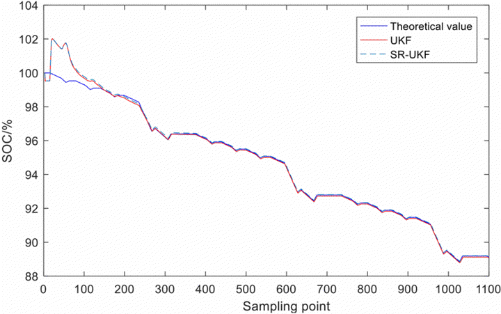 Precise state-of-charge estimation of lithium batteries is a requirement to make sure the battery management system can be operated reliably. This paper establishes a second-order RC equivalent circuit model at first. Then parameter identification are done according to the deviation-compensated least squares method. A square root unscented Kalman filter algorithm is used for state-of-charge estimation at different initial values. The experimental outcomes mirror that the state-of-charge estimation based on the square root unscented Kalman filter algorithm has higher accuracy, robustness and faster convergence speed.