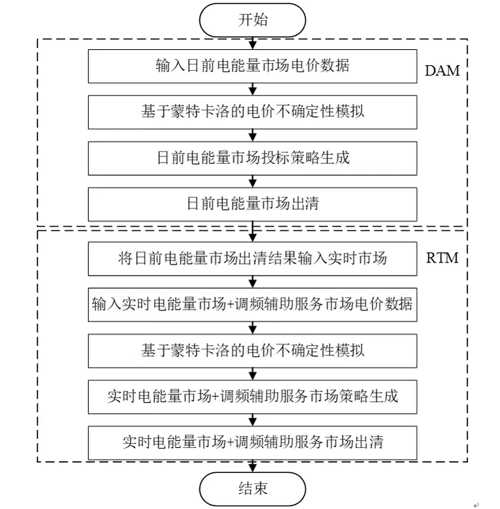 本发明公开了一种电力现货市场背景下储能电站调控策略制定方法。本发明采用的技术方案为:采用现货电能量市场日前电价、实时电价以及调频辅助服务市场电价数据作为输入,考虑日前和实时电能量市场电价差异调整储能投标策略,从而进一步提升储能电站多场景应用下的经济性,计及储能电站运行损耗和电力现货市场背景下电价的不确定性,建立储能电站同时参与调峰调频服务收益最大的两阶段优化调度模型。本发明计及储能电站运行损耗及电价不确定性制定了最佳储能电站调度策略,实现了电力现货市场背景下储能电站的多场景应用,从而为电化学储能电站的调控提供依据,提高了储能电站的经济性。