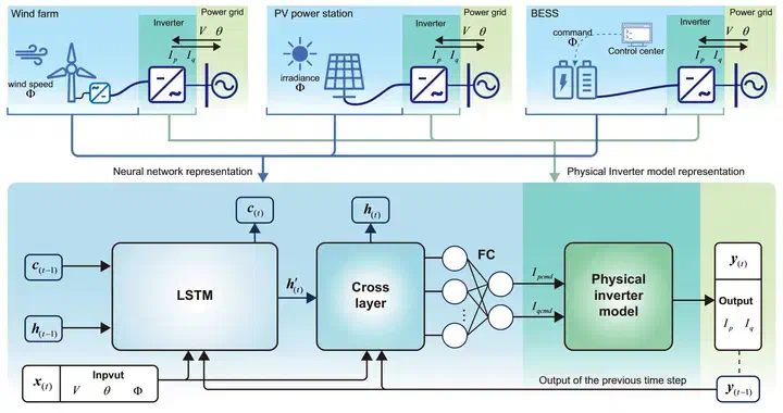 Dynamic models are a cornerstone of power system stability and control. The growing penetration of inverter-based resources, driven by global decarbonization, significantly complicates power system dynamics. For large-scale power systems, existing dynamic models of these resources have long struggled to accurately capture their complex behaviors, limited primarily by explicit formulations based on simplified physical governing equations. This study presents a data-driven modeling approach that uses neural networks to learn and represent these dynamics exclusively from accessible data. Its tailored architecture combining long short-term memory network for temporal dependencies with a cross layer to model nonlinear feature interactions. Physical constraints from an inverter dynamic model are enforced to enhance consistency and prevent implausible outputs. Validated on a real-world power system (including a wind farm, a photovoltaic power station, and a grid-forming battery energy storage station), the proposed model shows superior accuracy and extrapolates across out-of-distribution scenarios. These findings are further confirmed in a large-scale power system and an inverter-dominated system. The presented approach provides an effective methodology to capture and simulate complex inverter dynamics, enabling more reliable transient stability assessment crucial for the secure operation of future grids.