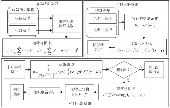 在面向居民的非侵入式负荷辨识场景中,存在部分电路结构、功率相近的相似电器。对于这些电器,现有算法辨识成功率较低。为提高对居民相似电器辨识的准确率,提出了一种基于多元特征分析的非侵入式相似电器辨识算法。该算法使用一对多维的低频电器特征数据进行分析,先将特征规范化,计算两种电器特征间马哈拉诺比斯距离,用以判断两种电器是否相似,再对原始特征使用主成分分析,以提取相似电器的主特征,最后将主特征输入多元高斯模型,得到辨识结果,判断电器运行状态,并分项计量电器能耗。使用实测电器数据与居民实际用电数据进行验证,并与其他模型进行对比。结果显示,该算法可有效提高相似电器辨识的准确性。