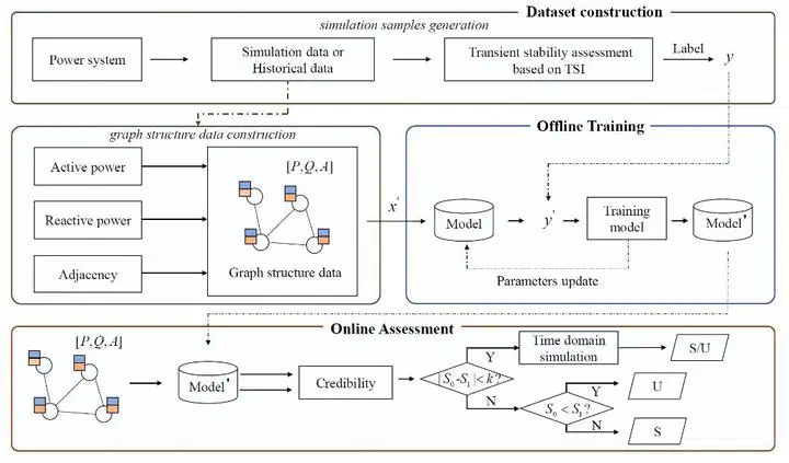 The real-time transient stability assessment (TSA) plays a critical role in the secure operation of the power system. Although the classic numerical integration method, i.e. time-domain simulation (TDS), has been widely used in industry practice, it is inevitably trapped in a high computational complexity due to the high latitude sophistication of the power system. In this work, a data-driven power system estimation method is proposed to quickly predict the stability of the power system before TDS reaches the end of simulating time windows, which can reduce the average simulation time of stability assessment without loss of accuracy. As the topology of the power system is in the form of graph structure, graph neural network based representation learning is naturally suitable for learning the status of the power system. Motivated by observing the distribution information of crucial active power and reactive power on the power system’s bus nodes, we thus propose a distribution-aware learning (DAL) module to explore an informative graph representation vector for describing the status of a power system. Then, TSA is re-defined as a binary classification task, and the stability of the system is determined directly from the resulting graph representation without numerical integration. Finally, we apply our method to the online TSA task. The case studies on the IEEE 39-bus system and Polish 2383-bus system demonstrate the effectiveness of our proposed method. The code is available at https://github.com/kxchern/dkepool-tsa